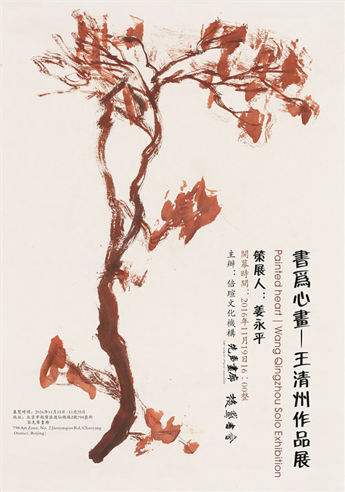 王清州是写书法出身,以书如画自然成为他创作的主要灵感来源之一。他摒弃了写实主义的造型,不在单纯追求事物真实的外貌,而是立足于瞬息间个人心理的真实。对他来说,画是“写”出来的而不是精心描摹或胡乱涂鸦的。他的作品既不在于精湛的技法,也不在于动人的构思,而是在深刻的思想以及艺术家内在之我旨趣的天然流露,是他将书法、绘画探索的一种完美融合。