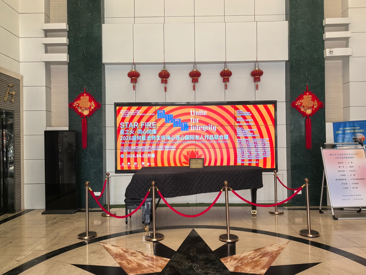 2026年4月1日,备受瞩目的“星之火·同心同廉”——2026届何星池师生侨海心连心国际友人作品联合展在镇江市文化馆正式拉开帷幕,展览将持续至月末。此次展览由镇江市文化广电和旅游局主办,镇江市文化馆承办,杭州电子科技大学致公党支部、数智化传播研究所、中国本土品牌设计研究所、深圳市壹心视觉品牌顾问有限公司等单位协办。