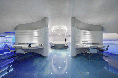 该项目位于广州南沙新区。该地区是中国发展最快的区域之一,必然会成为一处世界级港口和大规模的科技中心。该项目的主要区域面积为1958平方米,占这栋面积20440平方米建筑一层的一半。该空间包含了入口大厅、办公室、会议室和一处控制室(技术人员用来检查服务器机柜的状态)、安装有多媒体设施面积达1050平方米的展馆用来介绍公司的服务、一处180度投影房间、展示云DCS配件的产品展廊、塑料球制成的3D视频屏幕、互动式视频展馆以及用来展示由arboit ltd设计的云DCS将来自己产业园建筑模型的两个展示桌。建筑的其他部分则是包含了成百上千服务器机架的大型空间。