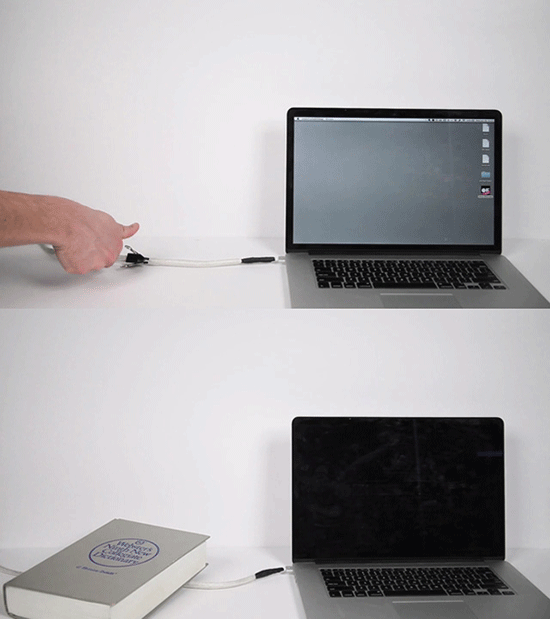 当你不小心把重物压在笔记本的电源线上时,Cord UIs 在感应到压力之后便会自动关闭电脑