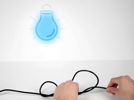 打结。所有人都讨厌打结的线,但研发团队却将其变成一种控制方式。在台灯的电源线上打一个结,就能通过改变结的松紧,来控制灯光的强弱;而当你改变线结的位置时,还可以控制其他的可变因素,如灯光的颜色和方向。研发团队解释:“如果是一盏 RGB-LED 灯的话,就可以通过三个线结,分别控制红色、绿色和蓝色三种光源参数。”